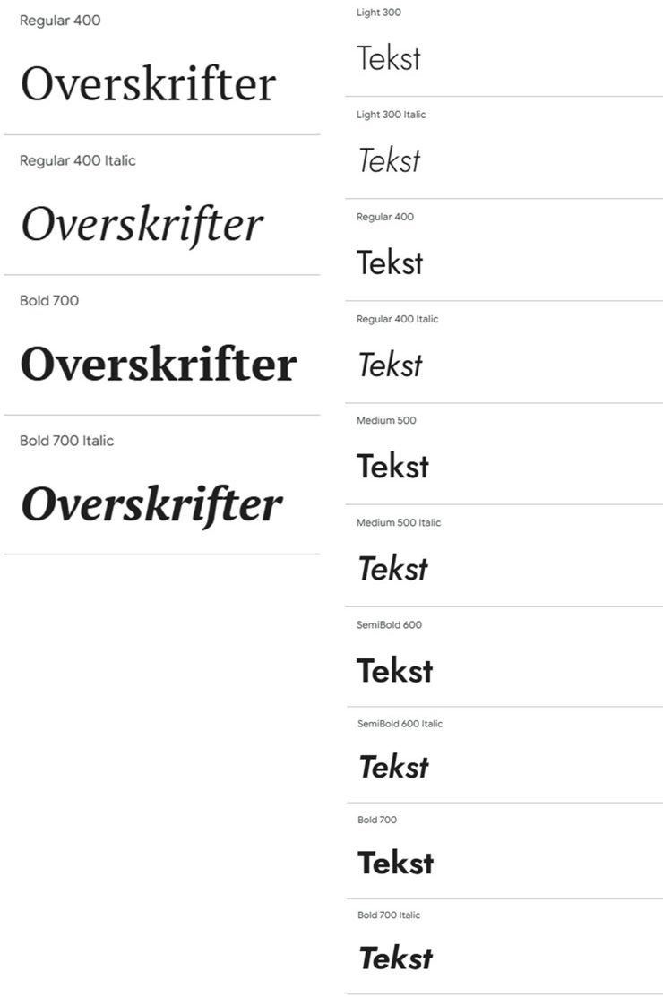 Statements typografi er fonten Arial nova som finnes i ulike vekter. Fonten har lisens hos Microsoft. Den kan kjøpes hos Myfonts.