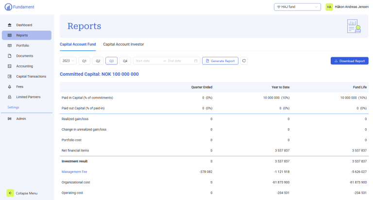 - Fondsadministrator: Verktøy for hele fondets livssyklus, inkl. rapportering, kapitaltransaksjoner og kommunikasjon